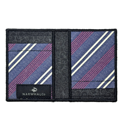 Narwhal Company :: Tie Fold Wallet - Men’s designer wallet that’s unique, just for you. This unique, bifold wallet, is made from an original, vintage, recycled, polyester, vintage neckties. It has the largest capacity of the tie wallets produced by Narwhal. Each side of the interior has two card pockets, which can each hold 2-3 cards, with an additional inside pocket on each side.  Whether it’s dollars, euro’s, yen or any other bank note, there are six individual places to put your things, all the while keeping a minimal profile. It’s a unique women’s wallet too for its ability to easily transfer cards from purse to purse.  Because they are one-of-a-kind, they are personalized wallets you can brag about and show to anyone.