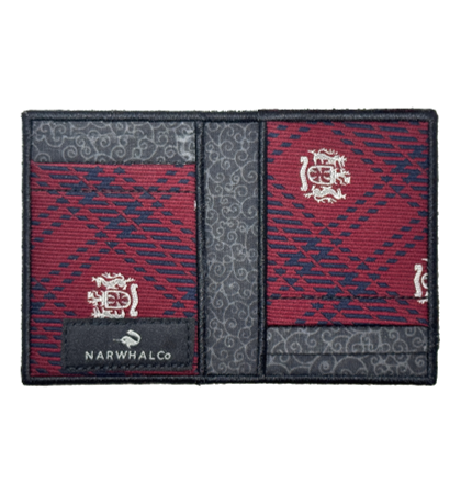 Narwhal Company :: Tie Fold Wallet - Men’s designer wallet that’s unique, just for you. This unique, bifold wallet, is made from an original, vintage, recycled, polyester, vintage neckties. It has the largest capacity of the tie wallets produced by Narwhal. Each side of the interior has two card pockets, which can each hold 2-3 cards, with an additional inside pocket on each side. Whether it’s dollars, euro’s, yen or any other bank note, there are six individual places to put your things, all the while keeping a minimal profile. It’s a unique women’s wallet too for its ability to easily transfer cards from purse to purse. Because they are one-of-a-kind, they are personalized wallets you can brag about and show to anyone.