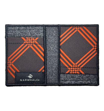 Narwhal Company :: Tie Fold Wallet - Men’s designer wallet that’s unique, just for you. This unique, bifold wallet, is made from an original, vintage, recycled, polyester, vintage neckties. It has the largest capacity of the tie wallets produced by Narwhal. Each side of the interior has two card pockets, which can each hold 2-3 cards, with an additional inside pocket on each side.  Whether it’s dollars, euro’s, yen or any other bank note, there are six individual places to put your things, all the while keeping a minimal profile. It’s a unique women’s wallet too for its ability to easily transfer cards from purse to purse.  Because they are one-of-a-kind, they are personalized wallets you can brag about and show to anyone.