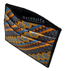 The Tie-Rack is a traditional minimalist wallet with a vertical of 3" (7.62cm) and a horizontal of 4" (10.16cm). It has two forward facing pockets and an interior pocket.